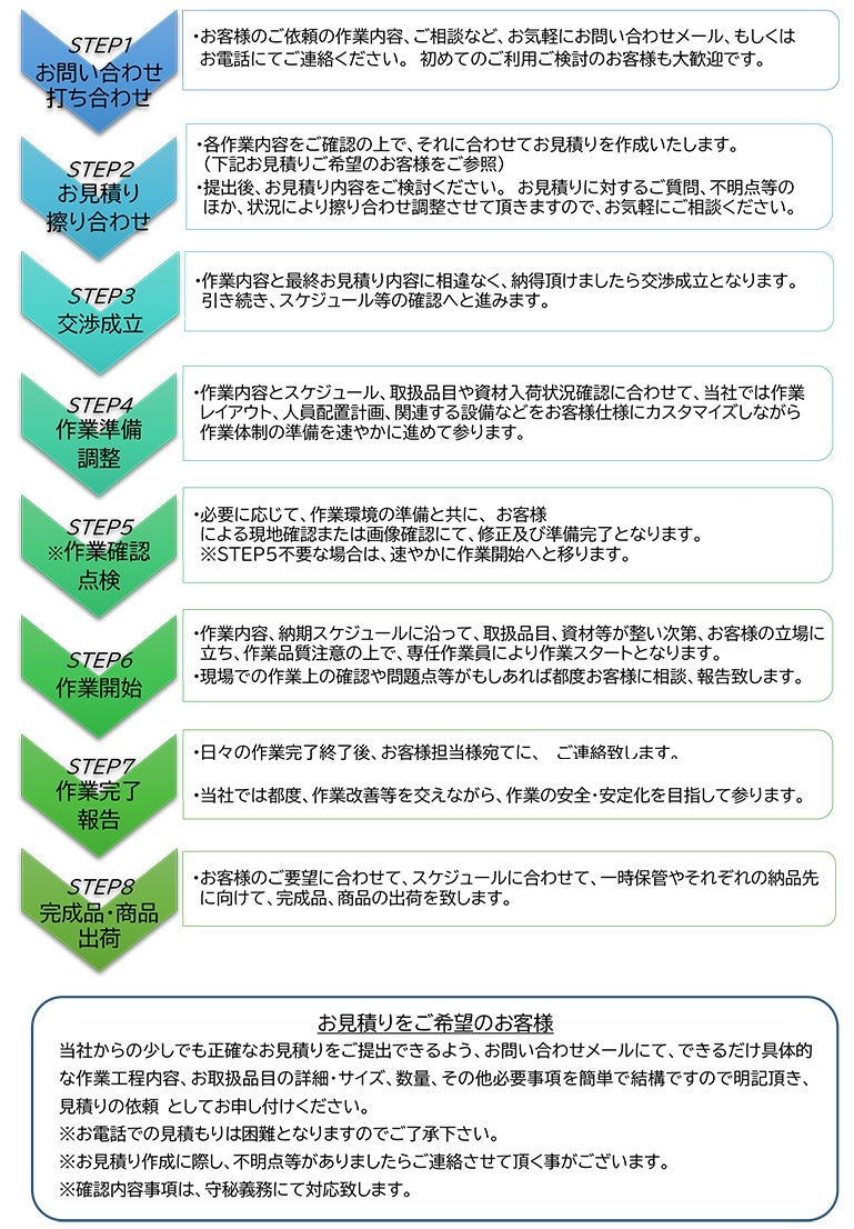 ※該当しない作業や新たな作業など有りましたら、お気軽にお問い合わせ下さいませ。
